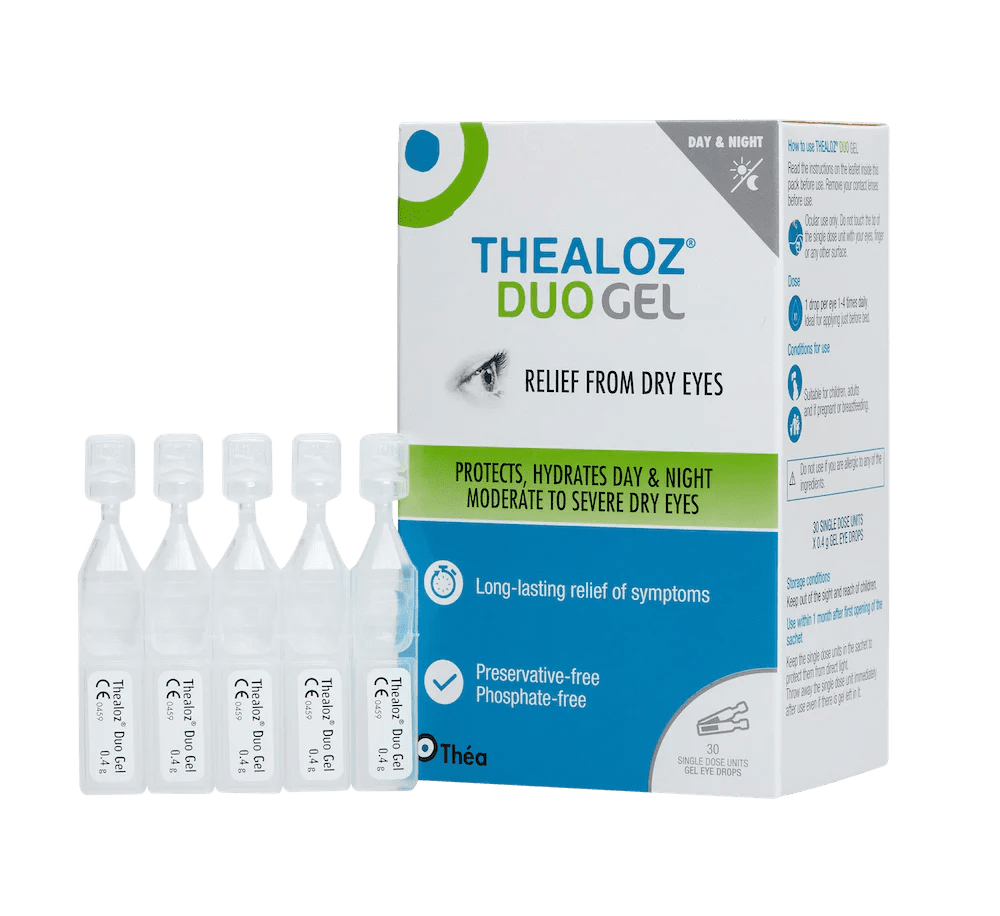 Thealoz Duo Gel combines dual-action ingredients in a gel formulation to provide extended hydration and surface protection for dry, irritated eyes. It helps stabilise the tear film, protect the ocular surface, and relieve persistent discomfort associated with chronic dry eye conditions.